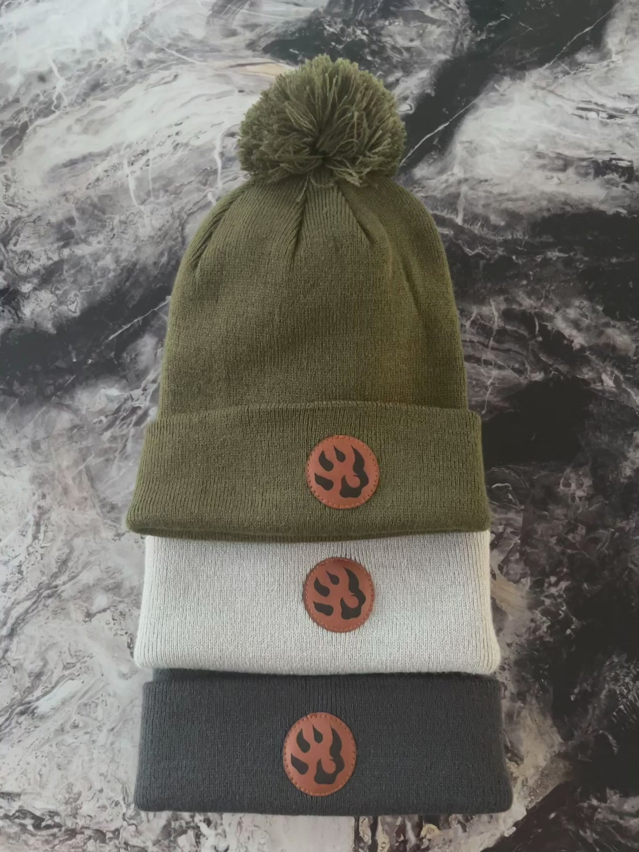 Bonnet à pompon patte de chien maille fine
